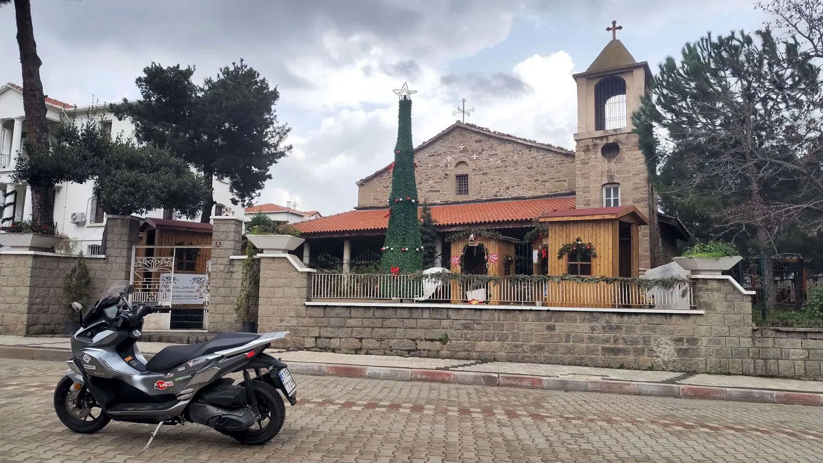 Υπό ψιλόβροχο και άστατες καιρικές συνθήκες, το οδοιπορικό συνεχίζεται στα ιστορικά ελληνικά χωριά της Ίμβρου: ¶γιοι Θεόδωροι, Αγρίδια και Σχοινούδι. Το QJMOTOR FORT 350 EVO συνοδεύει κάθε διαδρομή, προσφέροντας άνεση και σταθερότητα στους επαρχιακούς δρόμους του νησιού.