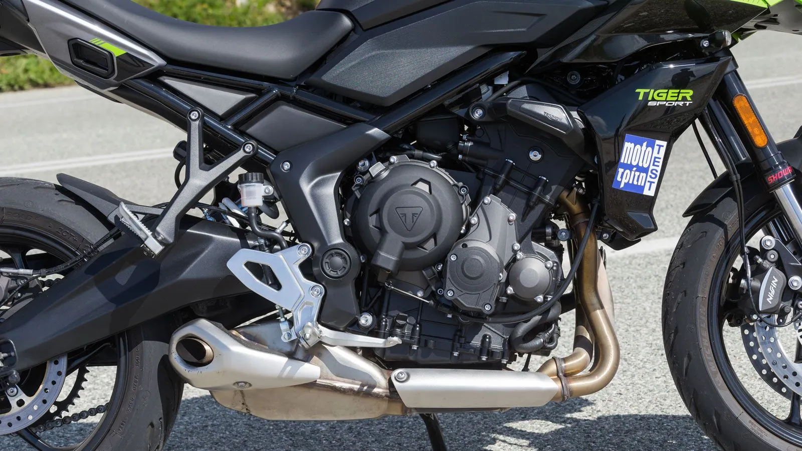 Η Triumph Tiger Sport 660 βασίζεται στον γνωστό τρικύλινδρο κινητήρα της βρετανικής εταιρείας, με καταγωγή από τη φιλοσοφία του Street Triple, αλλά προσαρμοσμένο στον χαρακτήρα ενός sport crossover. Στα 660cc, με δύο επικεφαλής εκκεντροφόρους και 12 βαλβίδες, αποδίδει 80 ίππους στις 10.250 σ.α.λ. και 64 Nm ροπής στις 6.250 σ.α.λ. (6,5 kgm). Το 90% της ροπής είναι διαθέσιμο χαμηλά, στοιχείο που αναδεικνύει το πλεονέκτημα της τρικύλινδρης διάταξης και ταιριάζει ιδανικά στον διττό χαρακτήρα της μοτοσυκλέτας.