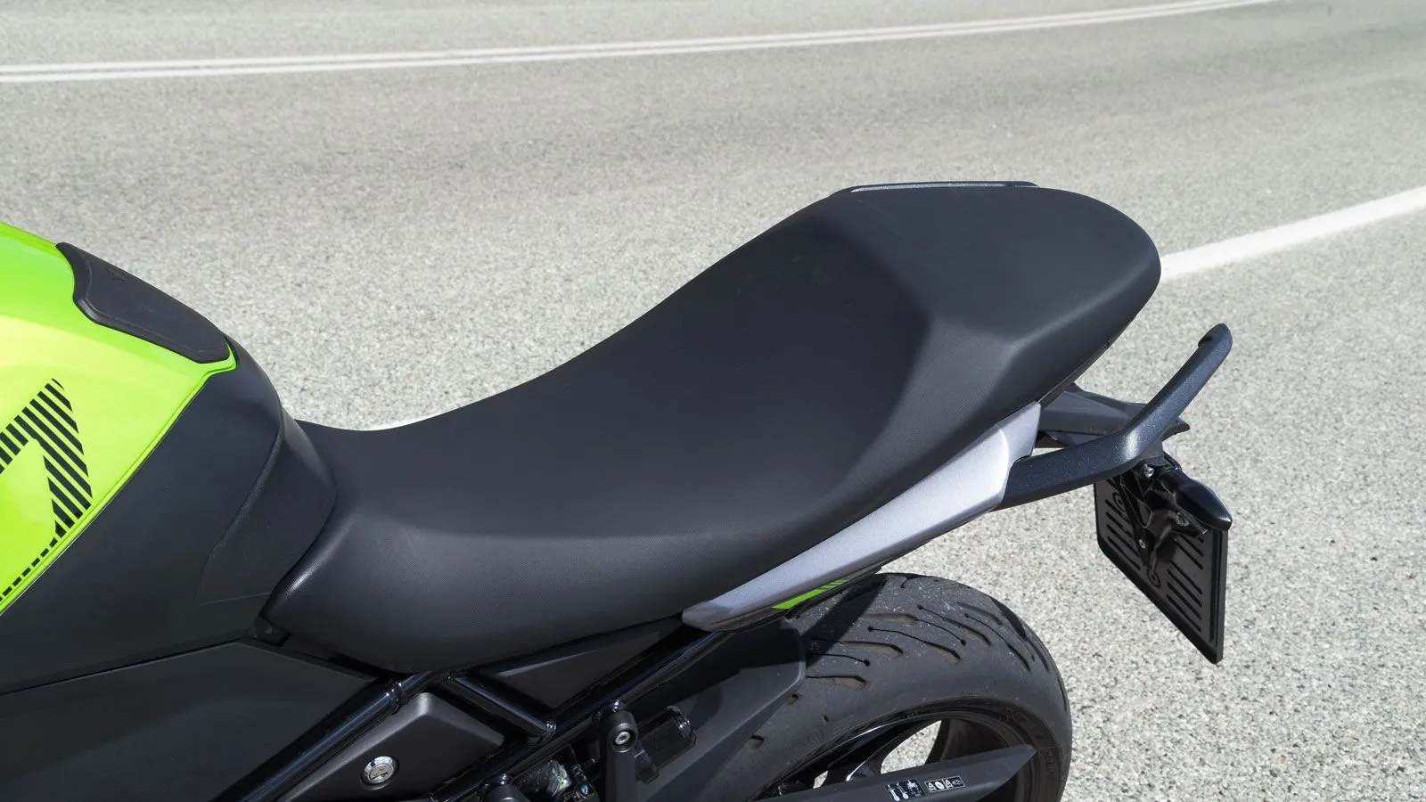 Η μονοκόμματη σέλα στα 835 χλστ. από το έδαφος προσφέρει καλό πάτημα και άνεση. Το αφρώδες υλικό θυμίζει aftermarket gel σέλες, επιτρέποντας πολύωρη οδήγηση χωρίς κόπωση. Το ρεζερβουάρ έχει εργονομικό σχήμα ώστε να αγκαλιάζεται εύκολα με τα πόδια, στοιχείο που βοηθά στον έλεγχο όταν οι ρυθμοί ανεβαίνουν.