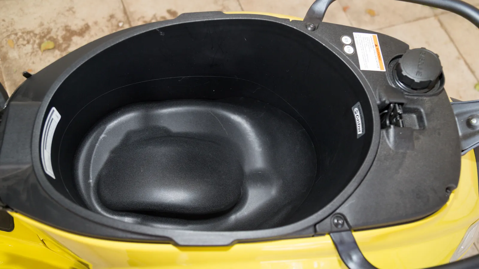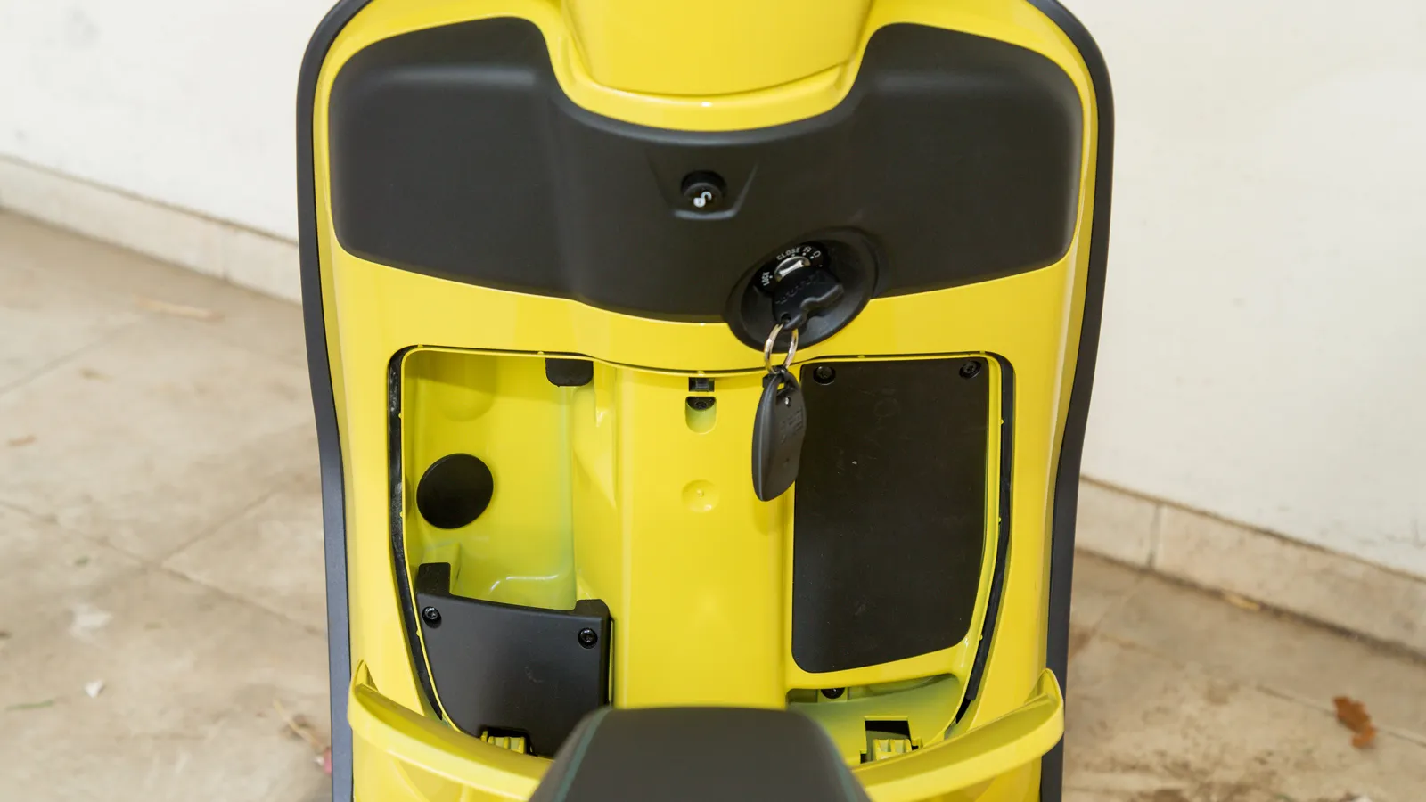 με τη σέλα να διαθέτει ηλεκτρικό κλείδωμα και να ανοίγει από κεντρικό κουμπί στην ποδιά. Εκεί βρίσκεται και η τάπα ανεφοδιασμού, στοιχείο που διευκολύνει την καθημερινότητα.