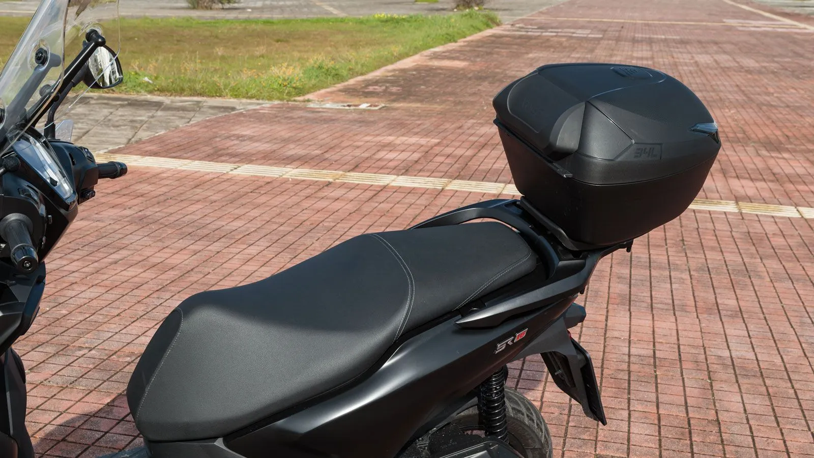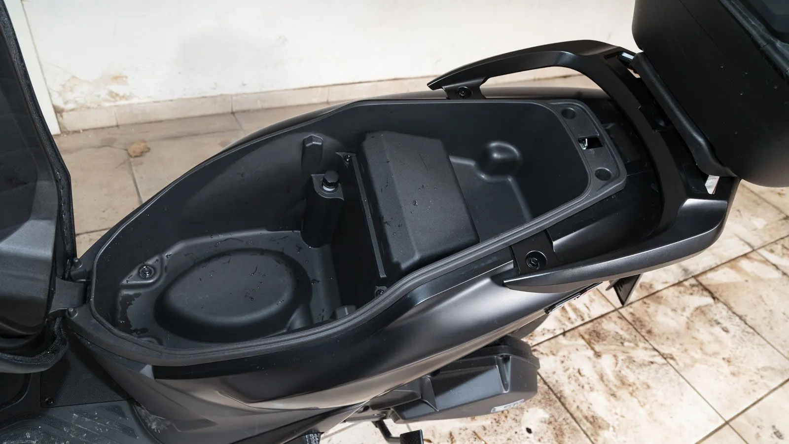 Ο ανεμοθώρακας προσφέρει πολύ καλή προστασία από αέρα και καιρικές συνθήκες, μειώνοντας την κόπωση στις μεγαλύτερες διαδρομές. Κάτω από τη σέλα υπάρχει χώρος για ένα κράνος, ενώ στο πίσω μέρος υπάρχει μικρός αποθηκευτικός χώρος με μαγνητικό κλείσιμο για κινητό ή μικροαντικείμενα.