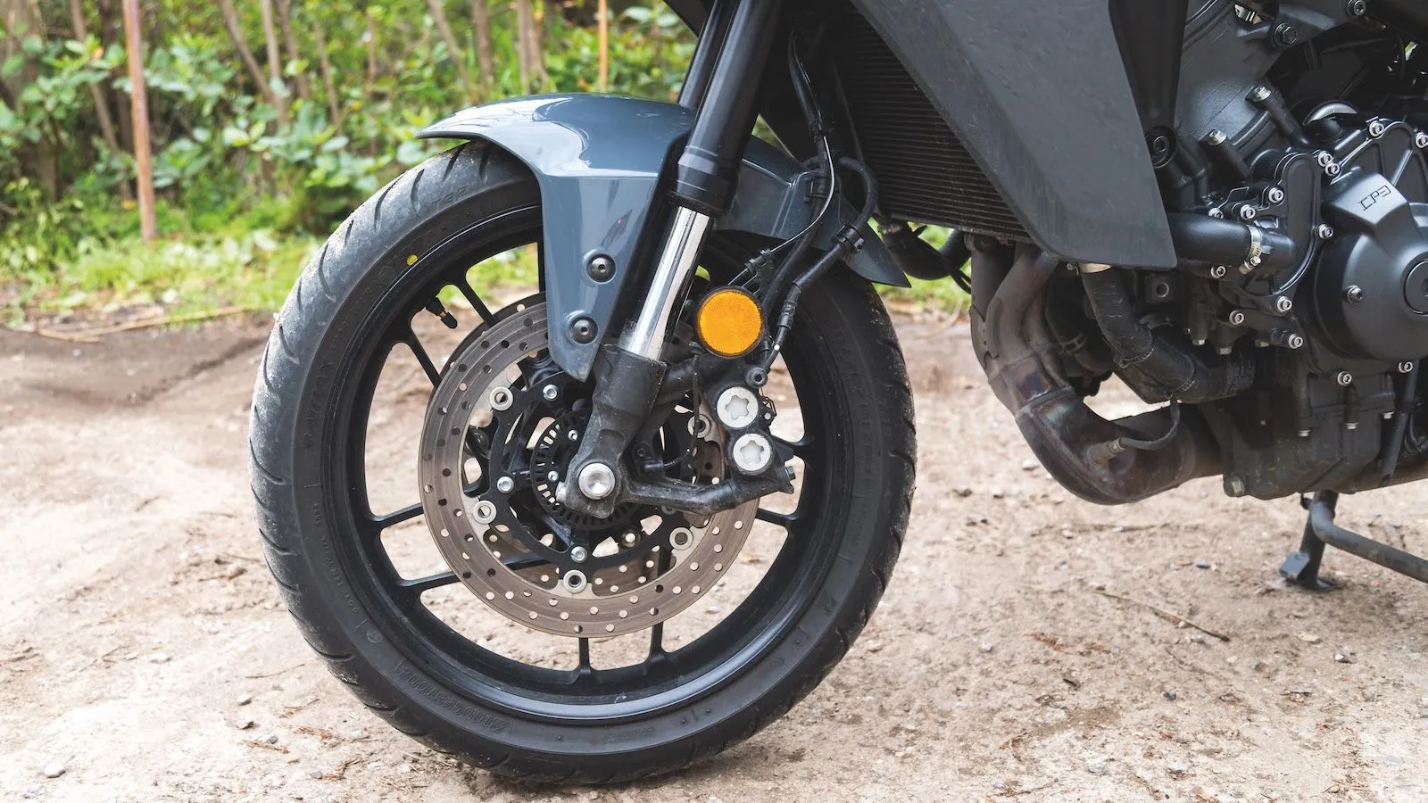 Τα φρένα διατηρούνται ως έχουν, με ακτινικές τετραπίστονες Nissin και δίσκους 298 mm μπροστά και 245 mm πίσω με δικάναλο ABS. Οι νέοι τροχοί SpinForged μειώνουν το μη αναρτώμενο βάρος κατά 200 γραμμάρια εμπρός και 300 πίσω, ενισχύοντας την ακαμψία και βελτιώνοντας την απόκριση στο τιμόνι. Το βάρος του μοντέλου διαμορφώνεται στα 219 κιλά στη χειροκίνητη έκδοση και στα 221 κιλά με το κιβώτιο Y-AMT, πάντα με πλήρη υγρά.