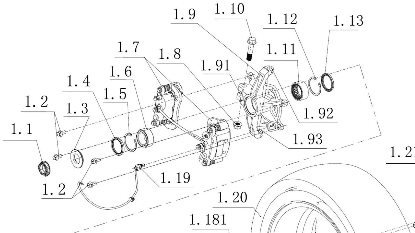 Η διάταξη hub-centre steering προσφέρει θεωρητικά καλύτερο διαχωρισμό δυνάμεων φρεναρίσματος και ανάρτησης, μειωμένο dive στο φρενάρισμα και μεγαλύτερη ελευθερία στη γεωμετρία. Στην περίπτωση της Zongshen, το εμπρός σύστημα φρένων προσαρμόζεται στη νέα αρχιτεκτονική, με έναν εσωτερικά τοποθετημένο δίσκο και δύο ακτινικά τοποθετημένες δαγκάνες δύο εμβόλων.