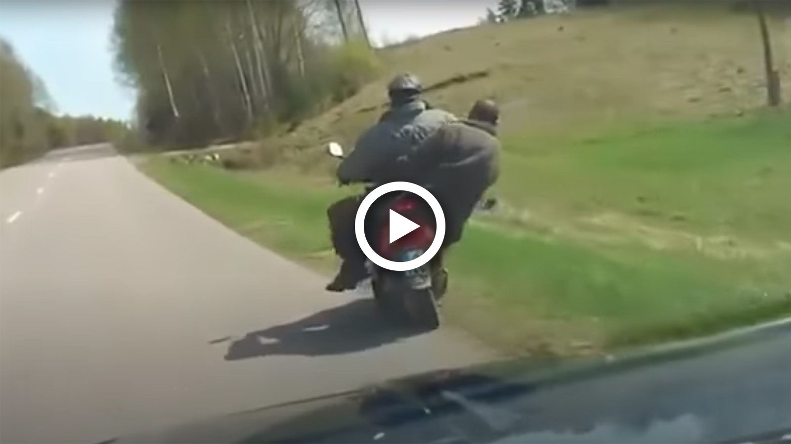Δύο αναβάτες κάπου στη Ρωσία, επιβαίνουν σε σκουτεράκι σε μάλλον ακατάλληλη κατάσταση για κυκλοφορία με τον ένα να κρέμεται! Η κατάληξη ήταν μάλλον αν...