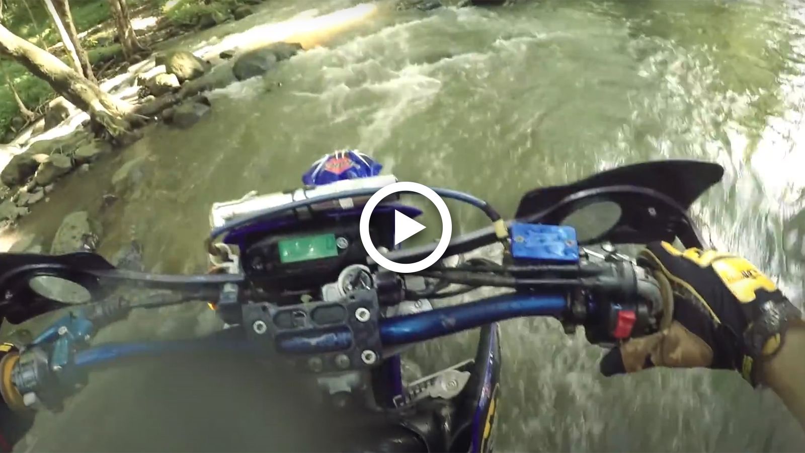 Αναβάτης που δεν λέει να βάλει γλώσσα μέσα αποφασίζει να διασχίσει ένα ποτάμι, όμως πέφτει μέσα με αποτέλεσμα η μοτοσυκλέτα του να μείνει! Το μπινελίκ...