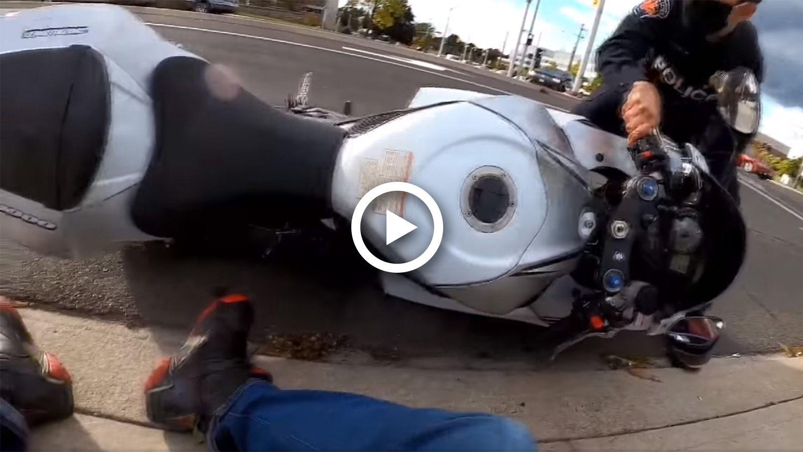 Αστυνομικοί στον Καναδά αντιδρούν ίσως υπερβολικά στην θέα αυτού του αναβάτη, ο οποίος όμως είχε κρυμμένη την πινακίδα του, ρίχνοντας τον κάτω! Συμφων...