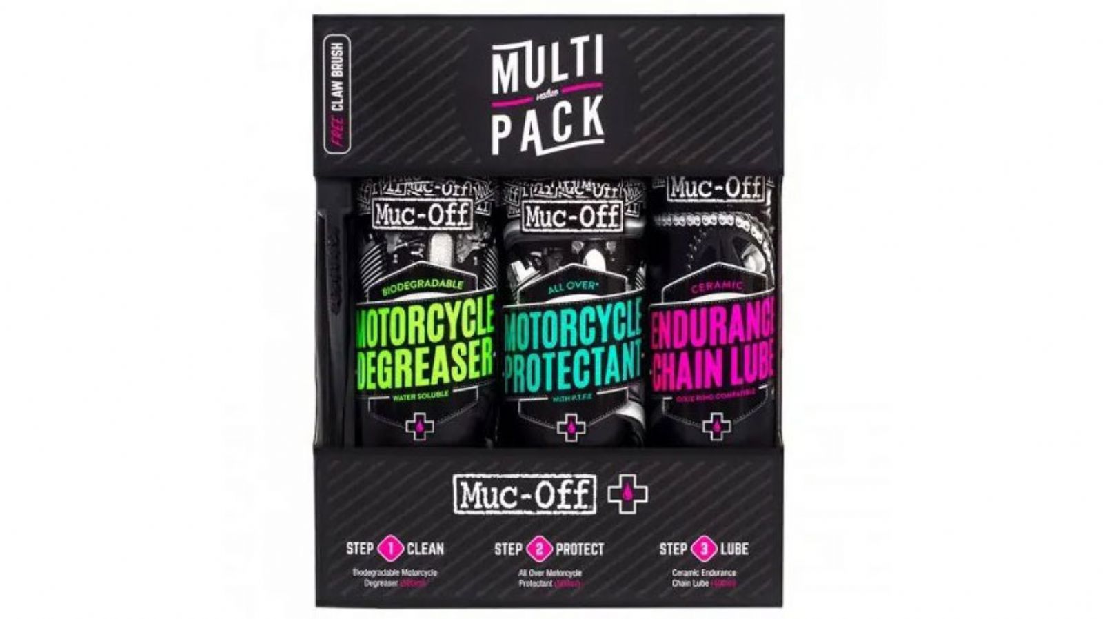 Καθαριστικό κιτ της Muc-Off, Mo Multi Value Pack το οποίο περιλαμβάνει λιπαντικό αλυσίδας, καθαριστικό μοτοσυκλέτας, προστατευτικό και βούρτσα καθαρισ...