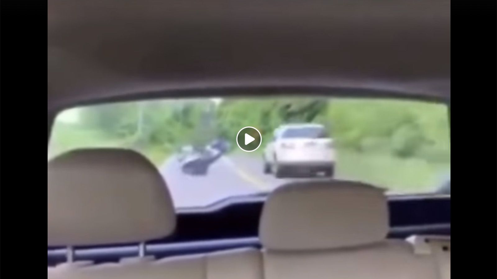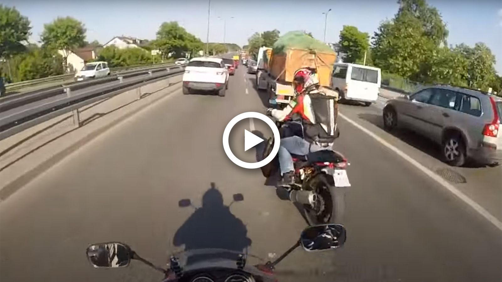 Οδηγός pickup προσπερνά ακραία αναβάτη στον αυτοκινητόδρομο, με το κλιπόν της μοτοσυκλέτας να πιάνεται από το pickup οδηγώντας τον αναβάτη σε πτώση! Δ...