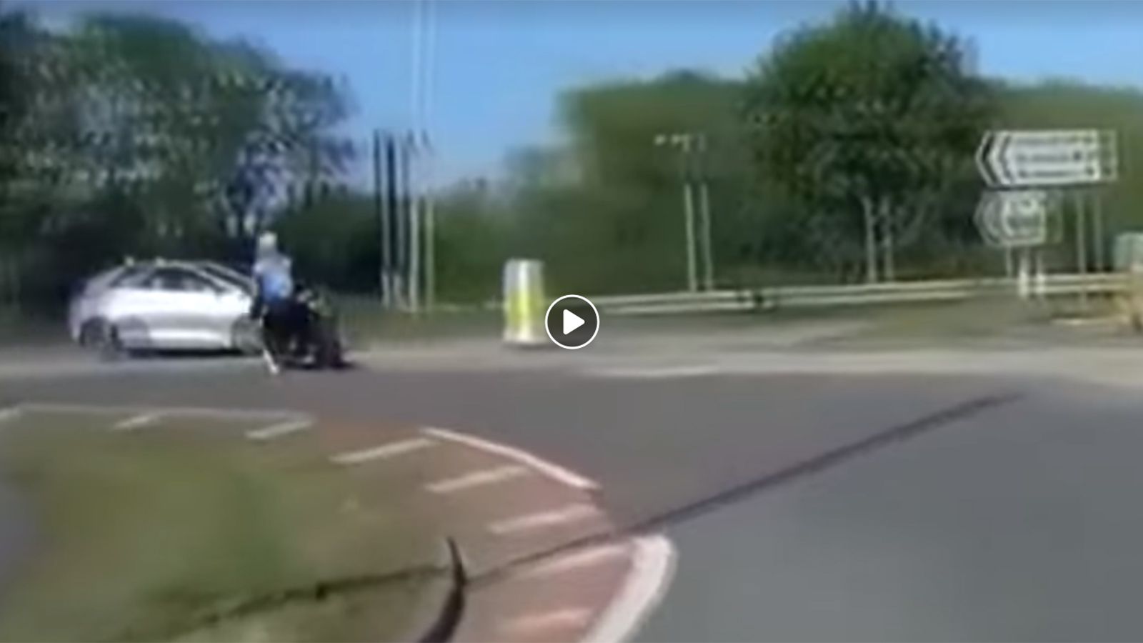 Μια αισιόδοξη προσπάθεια του αναβάτη αυτού να πάρει «καλά» την στροφή του κυκλικού κόμβου κατέληξε σε πτώση. Ο αναβάτης όχι μόνο έμεινε ψύχραιμος, αλλ...