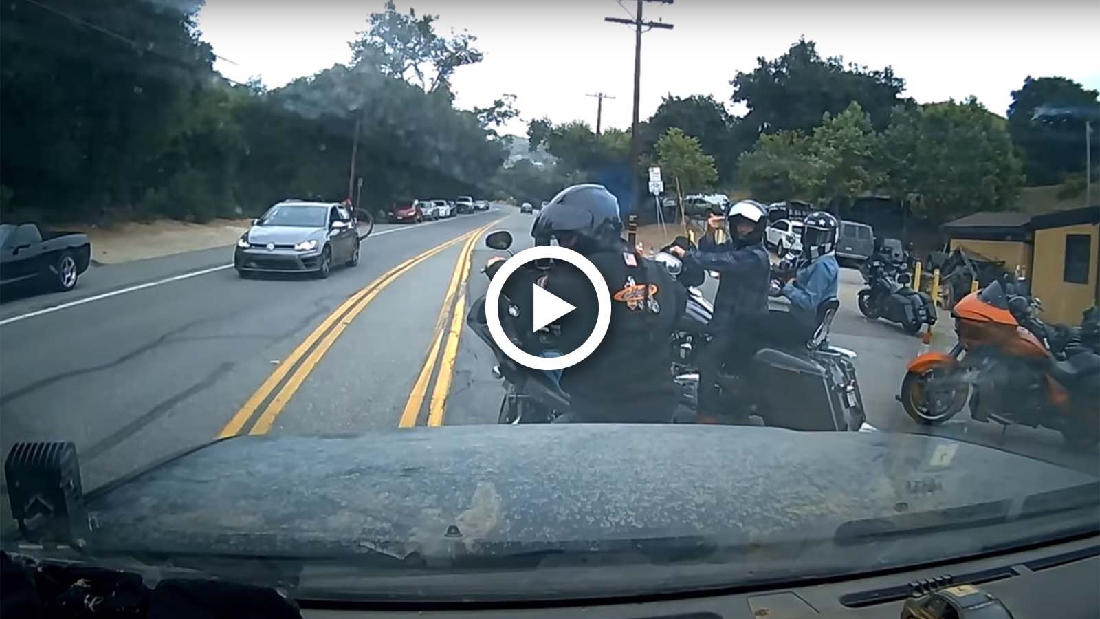 Στο κλιπ φαίνεται πως ο οδηγός κυνηγούσε επί αρκετή ώρα τον αναβάτη, όταν και καταφέρνει να του επιτεθεί! Δείτε όμως τι προηγήθηκε... ...