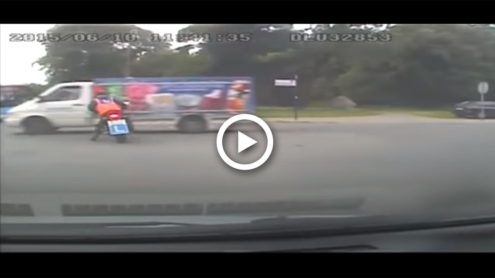 Σκληρές εικόνες: Ο αναβάτης της εκπαιδευτικής μοτοσυκλέτας που βλέπετε εδώ, περνά κανονικά τη διασταύρωση όταν ένα φορτηγάκι δεξιά του «καίει» το Stop...