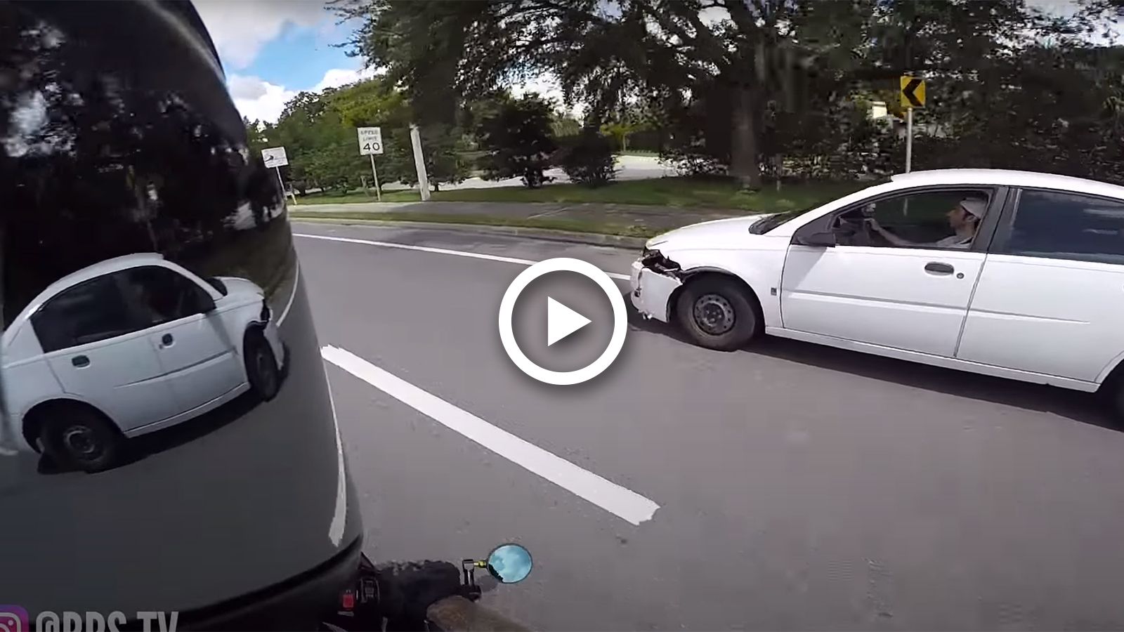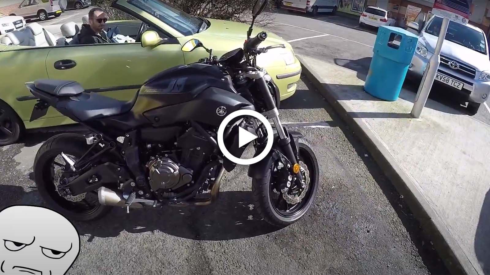 Ο αναβάτης αυτός θέλησε να τραβήξει ένα βίντεο παρουσίασης της MT-07 του, όταν όμως ένας οδηγός αυτοκινήτου αποφάσισε να του χαλάσει τα σχέδια. Δείτε ...