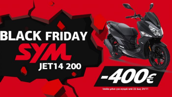 Στα πλαίσια της Black Friday, η Sym προσφέρει το Jet14 με τον κινητήρα των 200 κυβικών 400 ευρώ φθηνότερα. Δείτε εδώ τη νέα τιμή του.